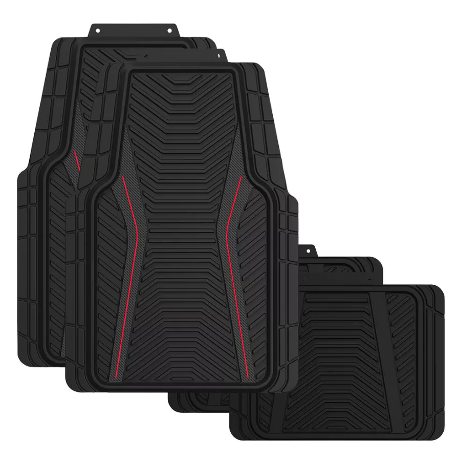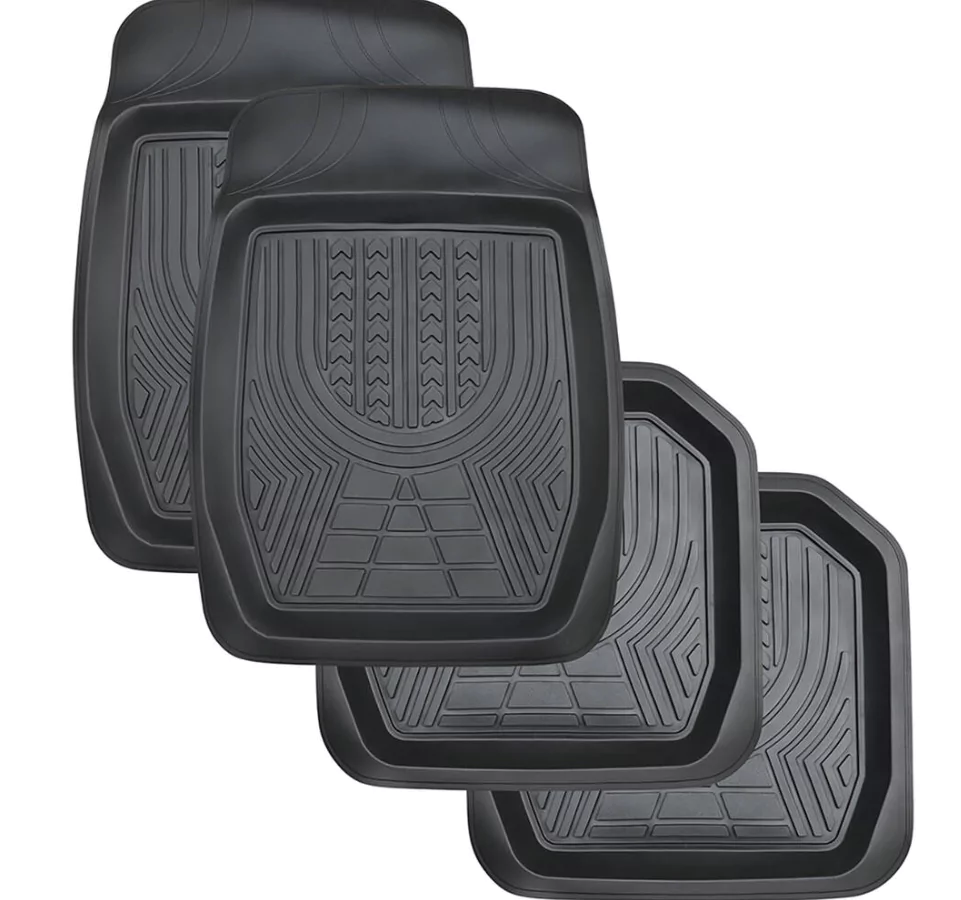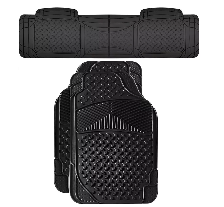 - Set of 4 floor mats for front and rear fitment, compatible with a wide range of vehicles