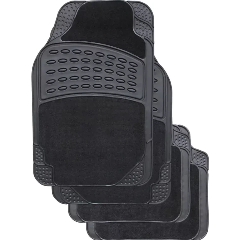 SCA Combo Car Floor Mats - Carpet / PVC, Black, Set of 4