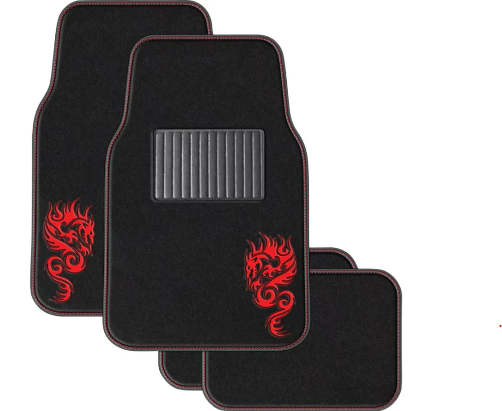 SCA Dragon Floor Mats Carpet Black/Red Set of 4